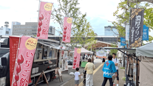 飲食ブースもにぎわいを見せており、かき氷を手に歩く子ども、焼きそばを家族で分け合う姿、飲み物を片手に休憩する友人同士など、それぞれが自由に楽しむ姿がありました。休憩スペースも整備されており、子ども連れでも落ち着いて過ごせる環境がありました。